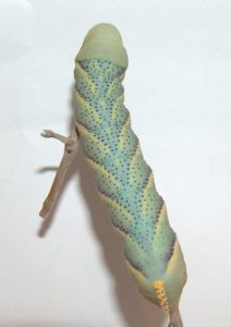 - На теле личинки появляются черные точки и характерные голубые полосы, рог постепенно светлеет и становиться более шершавым.