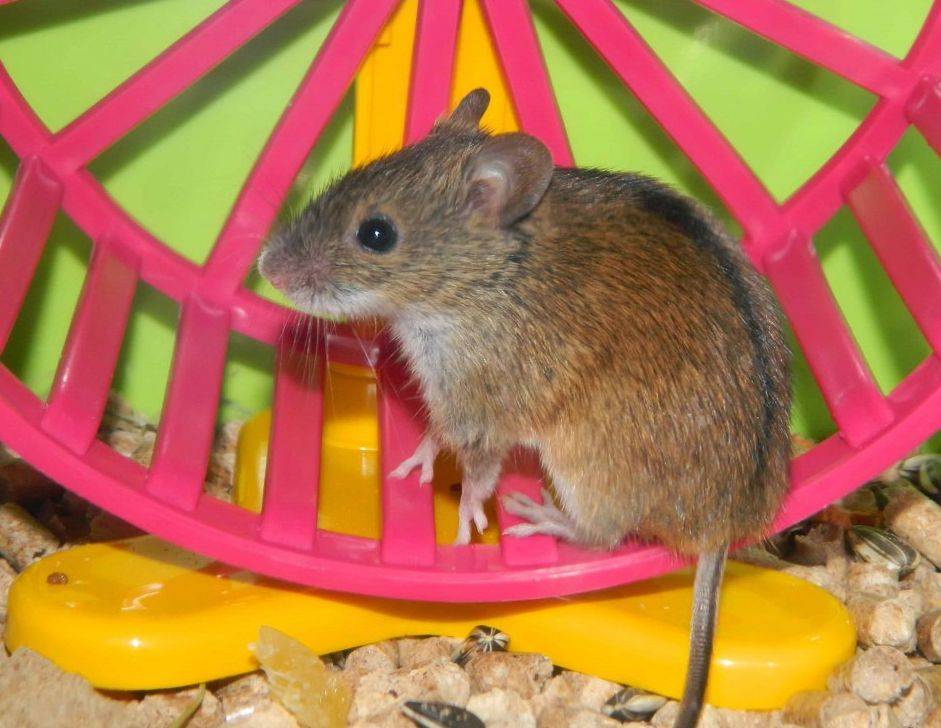 - Колесо. Это, пожалуй, один из важных атрибутов для здоровья грызуна. За счет своей активности, мышки не смогут без дела сидеть на месте. И именно беговое колесо снимет с ним все накопившуюся энергию.