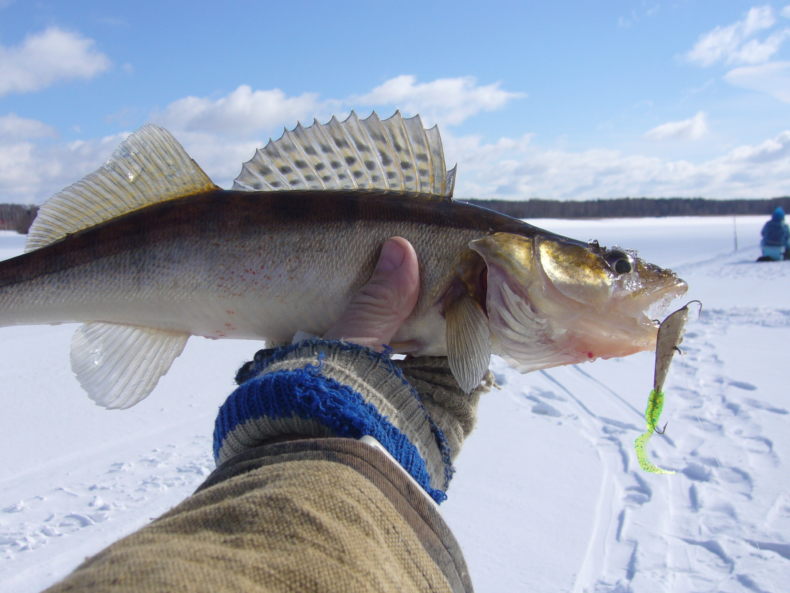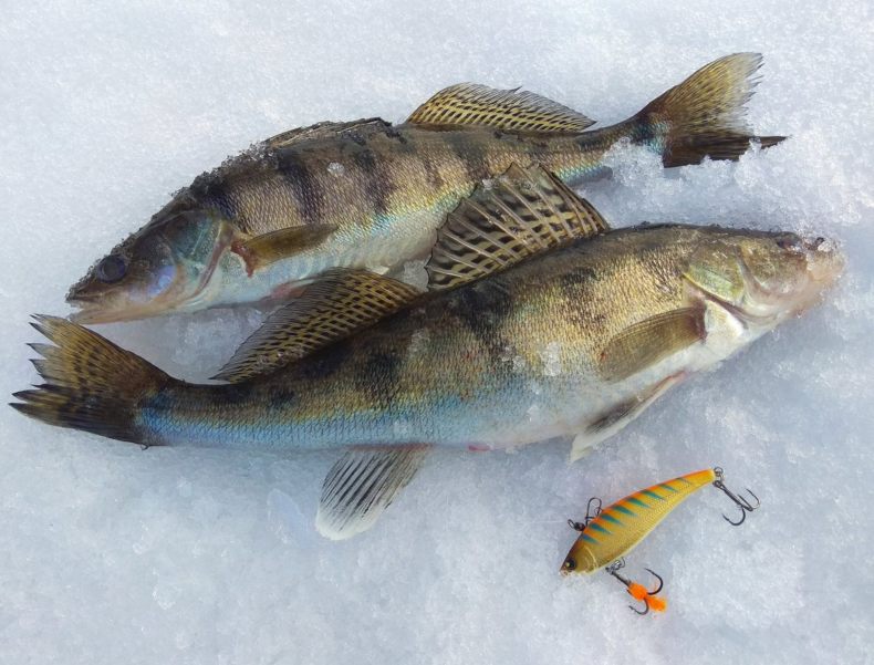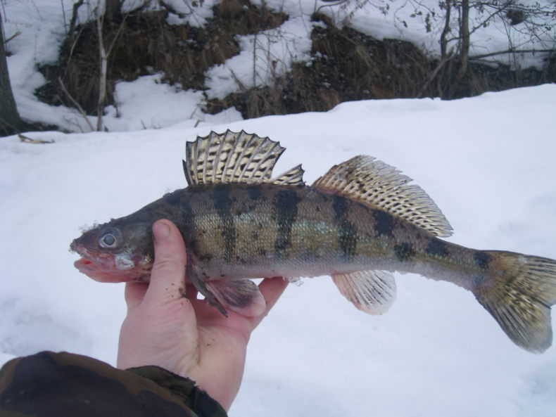 В зимнее время берши также преобладают в уловах, даже если целью рыбалки являлся судак. Со льда берши отлично ловятся на светящиеся мормышки с тюлькой, на светящиеся блёсны «адмиралы» и так называемые шведские «прыщи» – блесны с неровным бугристым покрытием, а также на различные балансиры, среди которых выделяются результативностью балансиры Мебару. Как правило, наиболее эффективны при ловле со льда светящиеся приманки. Если приманка имеет обычную раскраску, то её нередко снабжают светонакопительной полоской. Кроме того, при ловле берша желательно подсаживать резаную тюльку на любую приманку. Это – залог успеха.