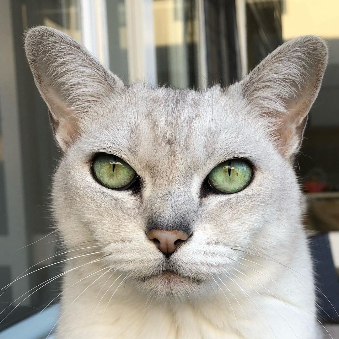 - Глаза большие, выразительные, широко поставленные, с черной обводкой и ориентальным разрезом. По форме напоминают полумесяц. Радужка бурмиллы может быть зеленой или янтарной. У подростков бурманской серебристой допускаются ярко-оранжевые глаза.