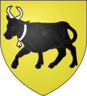 - В геральдике корова изображается не иначе как идущею и называется увенчанной (фр.couronnée ), если у неё на голове корона, с колокольчиками (фр.clarinnée ), если он у неё висит на шее, рогатой (фр.ассоrnéе ) и с копытами (фр.onglée) , если эти части её тела отличаются цветом от всего туловища.