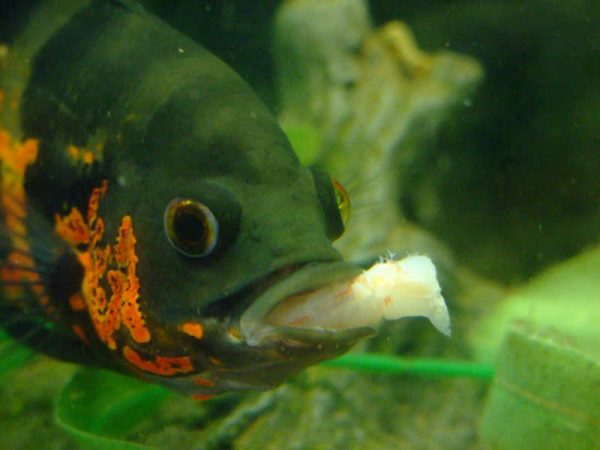 - Селить их вместе с мелкой рыбкой не стоит. Ведь оскар и другие разновидности фенотипа используют их в качестве корма. Это особо важно, если в качестве корма применяют филе рыбы.