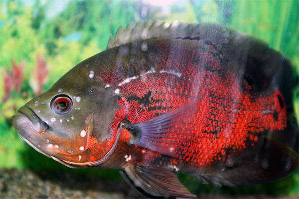 - Запуск аквариумной рыбки выполняют после запуска и привыкания других особей. Ведь оскар выделяется агрессивным характером.