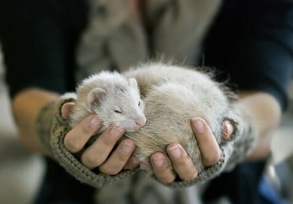 - Хорьки – небольшие животные, которые не занимают много места. Их можно перевозить даже в дамской сумочке.