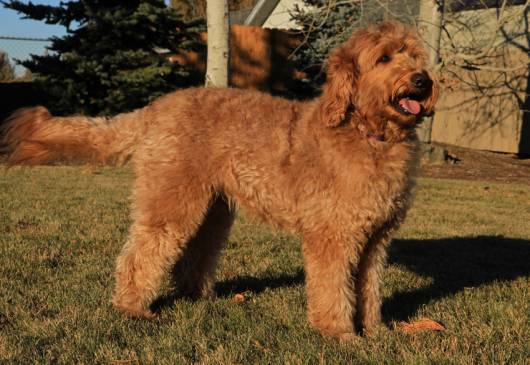 Хвост. Продолговатый хвост лабрадудля изогнут вверх, и образует полукольцо, часто спадающее на спину собаки.