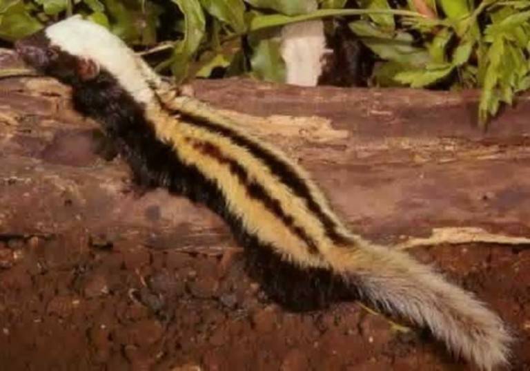 Мордочка, конечности и нижняя часть тела зверька черные, спина и хвост пепельно-серые, лоб украшает белая поперечная полоса.