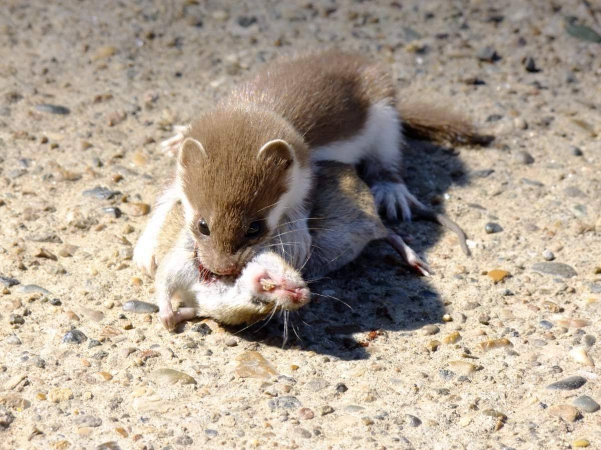 Ласка весьма предусмотрительный и запасливый зверь, в сытое время онаделает запасы, складывая мышиные тушки в укромном месте – такая заначка пригодиться ей в голодное время.