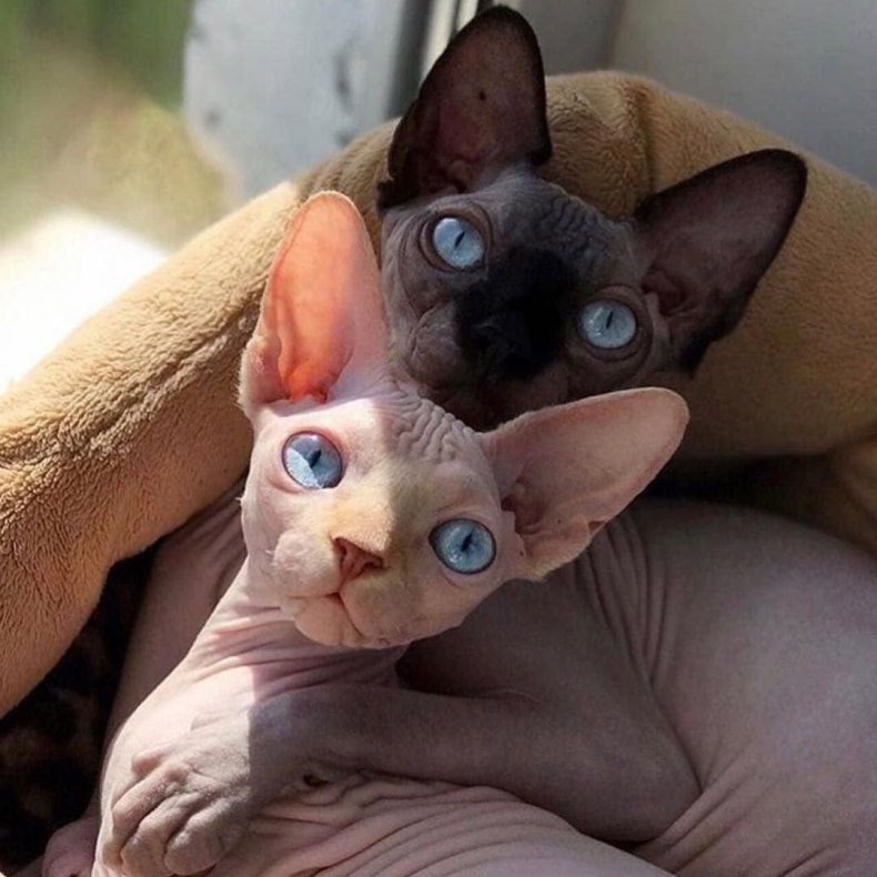 - Петерболды из-за отсутствия шерсти могут болеть простудными заболеваниями. Поэтому важно не переохлаждать питомца, после купания насухо вытирать его, а в холодную погоду надевать тёплую одежду. Часто коты этой породы забираются на кровать к хозяину и спят с ним под одеялом. Можно также купить для питомца тёплую подстилку.