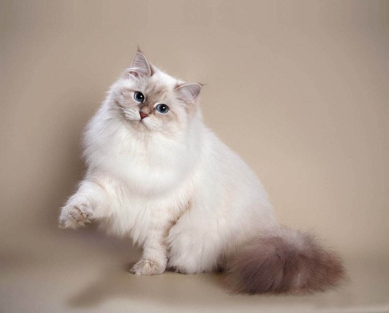 Голова у представителей этой породы среднего размера, но из-за шерсти мордочка кажется больше. Уши тоже среднего размера и расположены по бокам головы, что придаёт морде треугольную форму. Лапы длинные и сильные. Подбородок обычно хорошо развит, а овальные глаза должны быть голубыми.