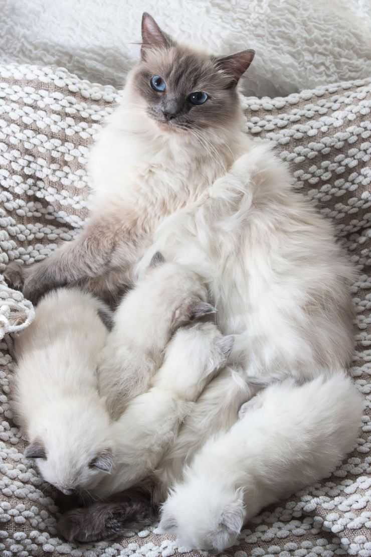 - Учитывайте, что котята рагамаффина приходят в этот мир с белой шерсткой. Окрас проявляется лишь со временем, на 16 неделе.
