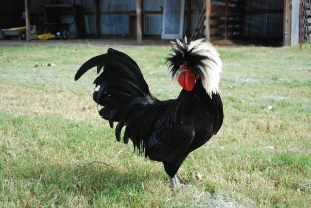 - Голландская — удивительная порода. По описанию курица бентамка похожа на птицу из сказки. Оперение чёрное, на голове белоснежный кучерявый хохолок и крупные глаза. Когда дерутся, стараются выщипать друг у дружки украшение и портят внешность.