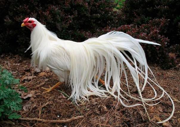 Хвост – настоящий предмет гордости «гардероба»: металлический зелёный отлив и чёрные крапинки, вырастает до 6 метров. Чтобы сохранить его целостность, петушков изолируют в отдельные вольеры, особенно ценных – за стекло, накручивая специальные держатели для хвоста. Вот в таком виде, на руках у хозяина, совершает прогулки счастливый его обладатель.