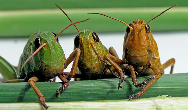 - Саранча при приеме пищи съедает все, что окрашено в зеленые цвета. Как только в замкнутом помещении заканчивается еда, имеющая зеленоватые оттенки, саранча начинает поедать своих сородичей, если они имеют зелененький цвет.