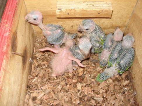 В феврале наступает период гнездования. Для попугаев необходимо подготовить специальное место. Им нужна небольшая клетка размером 50х30х30 см. Насыпьте на дно слой древесных стружек толщиной 15–20 см. В кладке насчитывается 3–4 яйца, которые самка высиживает в течение 26 суток.