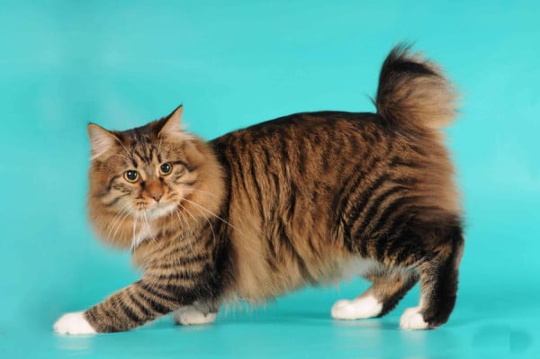 Еще одна молодая бесхвостая порода, но молодой ее считаем мы, а как давно дикие бесхвостые кошки обитают на американском континенте доподлинно не известно. Родоначальником породы считается пойманный в 60-х годах прошлого столетия дикий бесхвостый котенок, который обитал на территории Южной Аризоны. Американцы, видимо, решили, что и им нужно иметь бесхвостую оригинальную породу и занялись селекцией. Однако, до сих пор количество Американских Бобтейлов (далее на фото) очень немногочисленно и порода еще развивается.