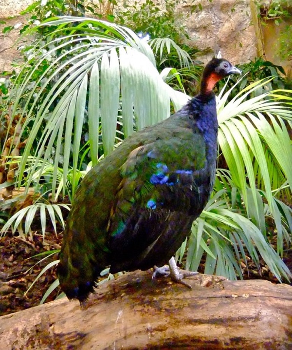 Африканские или красные конголезские павлины называются так, потому что их зеленоватое оперение отливает багрянцем. А горлышко — ярко-красное. Еще одно название — фиолетовые, так как их перья имеют лиловую окантовку. Это небольшие птички. Тело самцов не вырастает более 70 см. Длина самок и того меньше — 50 см.