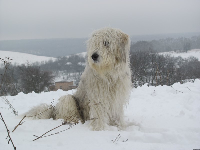 - лапы животного покрыты густой шерстью. По внешнему виду она имеет сходство с валенками. На голове тоже длинная шерсть. Она покрывает голову полностью, а спереди у псов свисает большая чёлка, которая достигает мочки чёрного носа. Если у питомца чёлка не достигает носа, а шерсть является слишком короткой, то это может говорить о том, что собака нечистокровная. В летний период шерстяной покров может стать немного короче и более грубым.