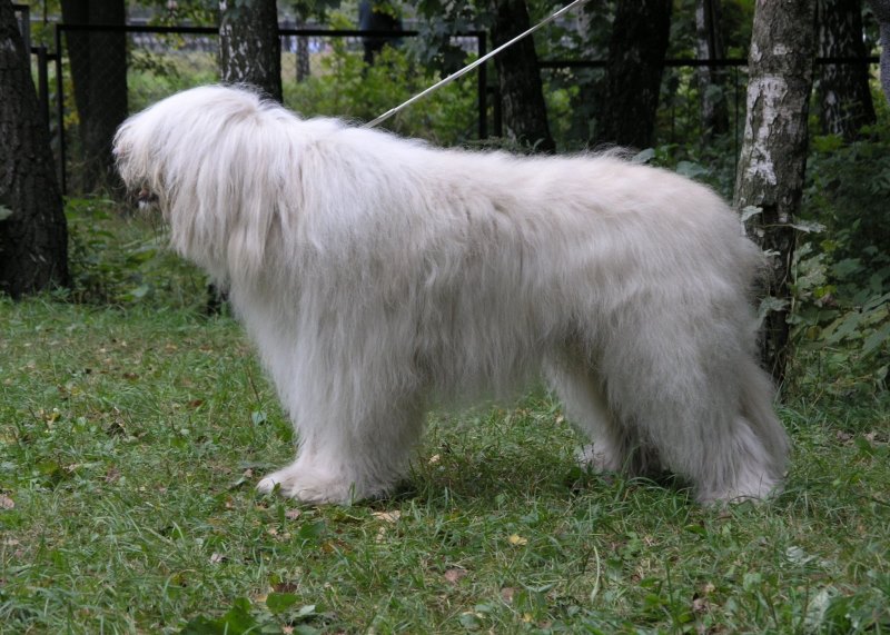 Длина шерсти около 10 сантиметров. По внешнему виду собака напоминает овцу.